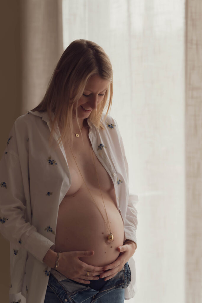 ” Je suis arrivée tendue, fatiguée, souvent submergée… et j’ai découvert un espace où j’ai pu me retrouver. La sophrologie m’a permis de reprendre contact avec moi-même, de retrouver ma respiration, mon calme, ma confiance. Lors de ma grossesse, elle m’a accompagnée avec douceur à chaque étape. Et cette séance photo, à la fin… c’était bien plus qu’une image : c’était moi, debout, en paix, prête à accueillir la vie. “
